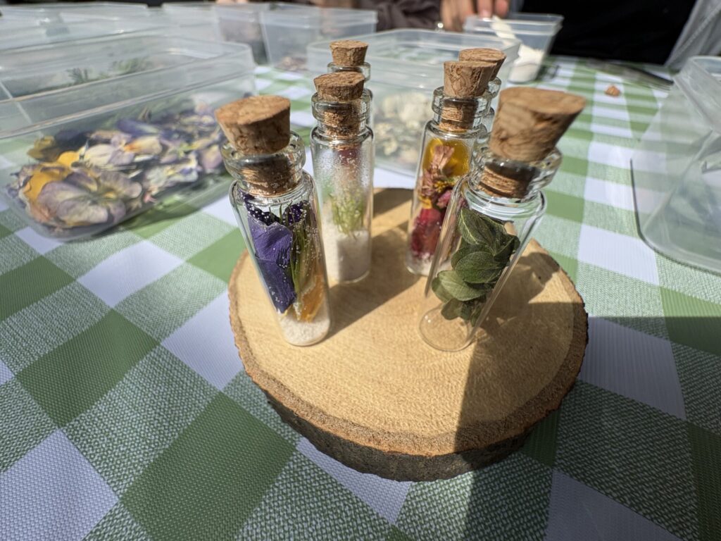 • お花のボトル作り: 小瓶にお花やカラー砂を詰めて、自分だけの世界を作ります。