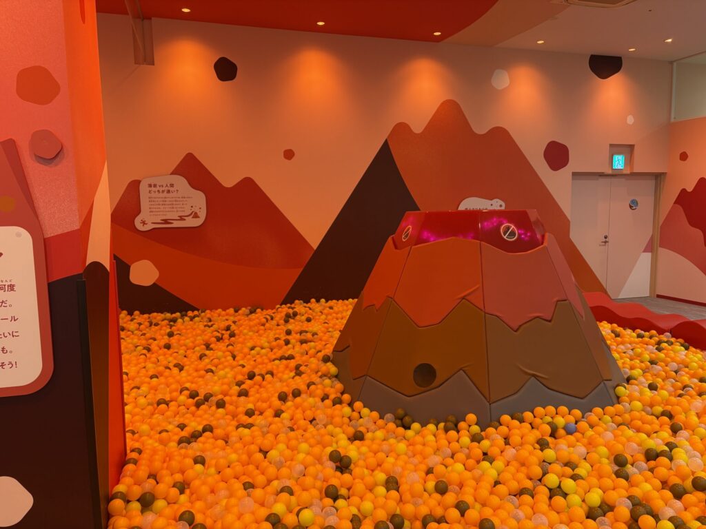 中には火山をイメージしたボールプール、