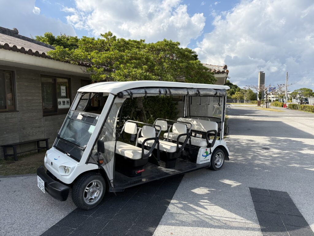 勝連城跡では、駐車場からカートで途中まで送ってくれるサービスがあります。